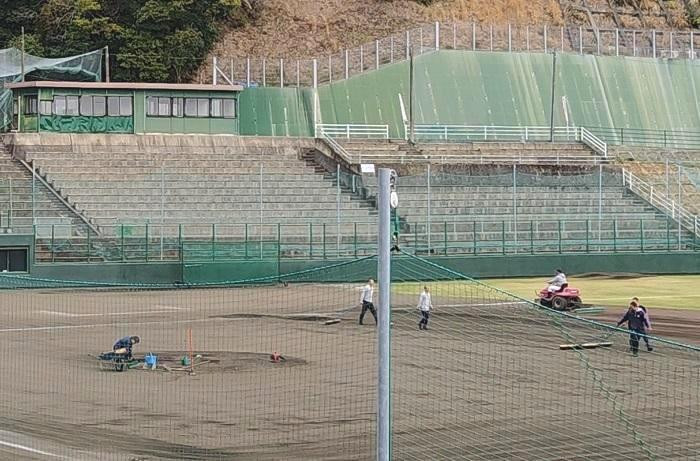 取材時には、関西の高校野球部が練習を終え、グラウンド整備や後片付けを行っていた。練習道具をバスに積み込み、坂道を上がってきたバスに乗り込む様子が見られた。