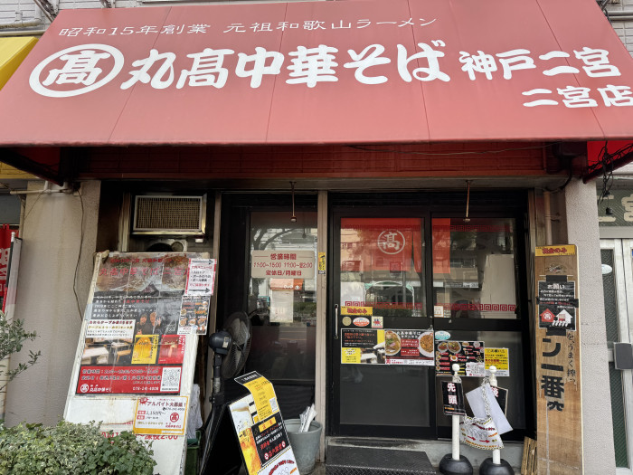 「丸高中華そば 神戸二宮店」さんは、神戸市営三宮駅から徒歩約5分のところ。オープンは11時ですが、オープン前から並びだします。