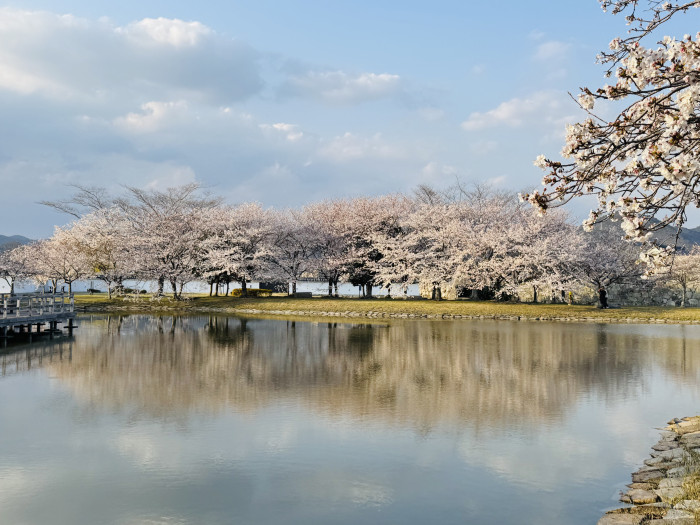 池の水面に映る桜は、非常に美しく見とれてしまいます。