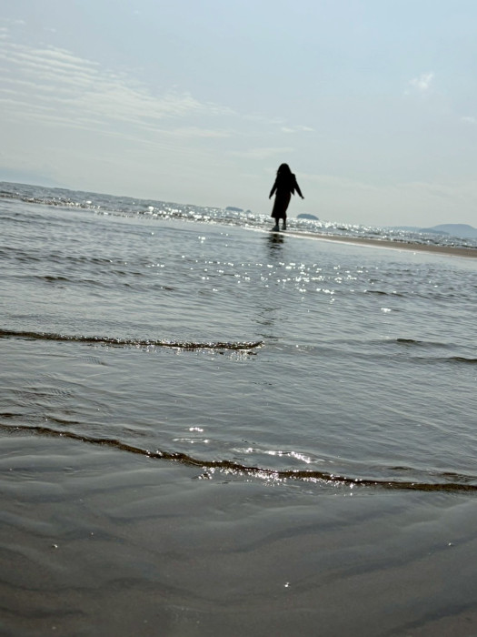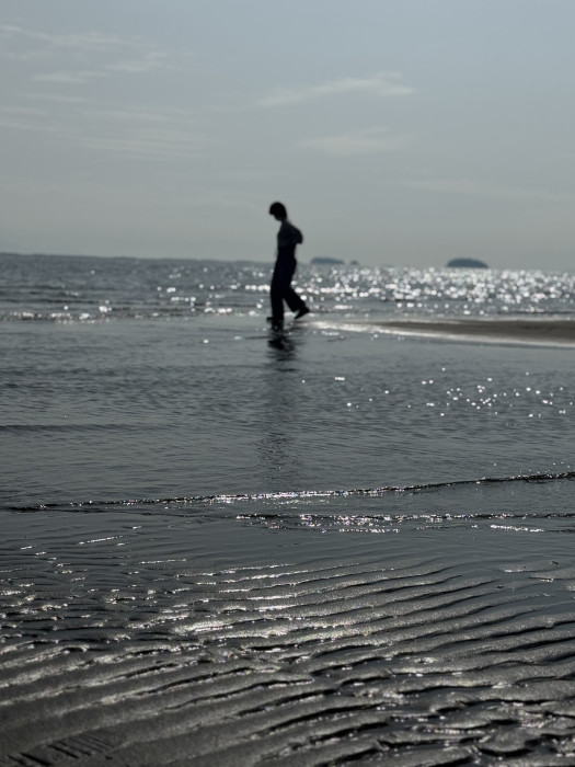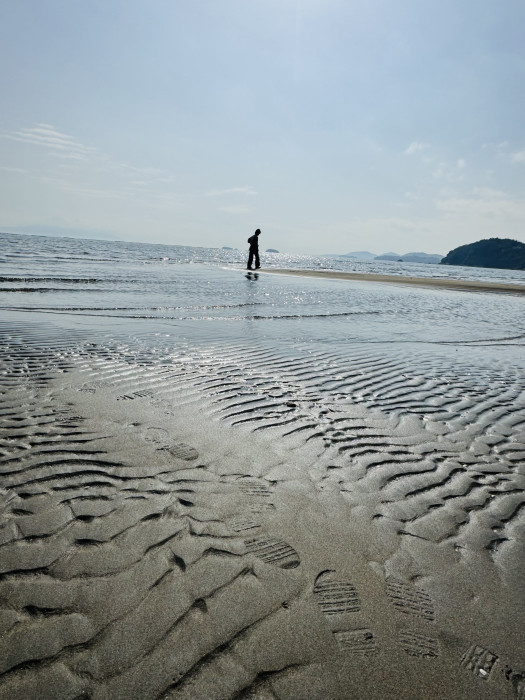 遠浅なので向こうのほうまで浅~くて(満潮時以外)、向こうのほうまでそのまま歩いて行けそう。