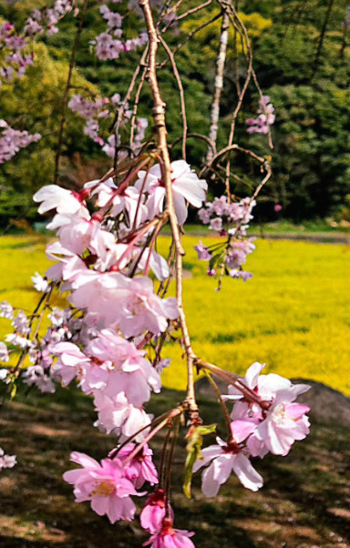 今年の佐世保は例年より寒かったので、まだまだ桜も咲いてました。園内になる数本の桜も満開です。菜の花に押されてましたが(笑)。