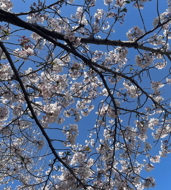 ちょっと写真が遠いのでわかりにくいかと思いますが、大村桜には特徴があって、花が二段になっていて、外の花と内側の花の真ん中におしべとめしべが串刺ししたみたいになっているんです。(伝わるかな(笑))