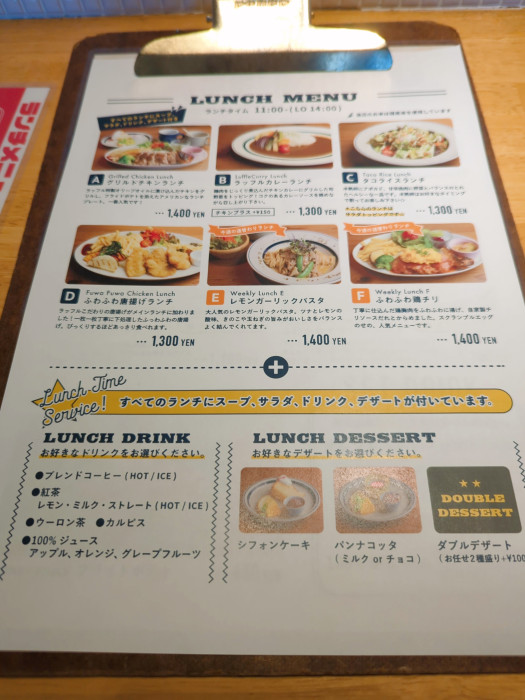 ランチはA~Fの6種類の中から選べます♪