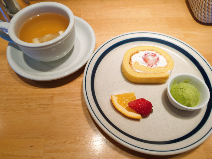 そして食後のデザートは旬のいちごを使ったロールケーキと紅茶を。