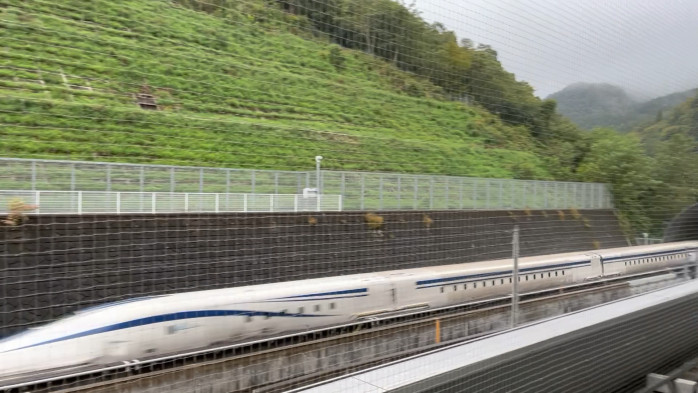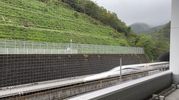 上から見ていると、遠くからリニアが走ってくるのが見えますよ。