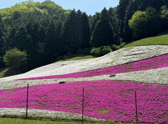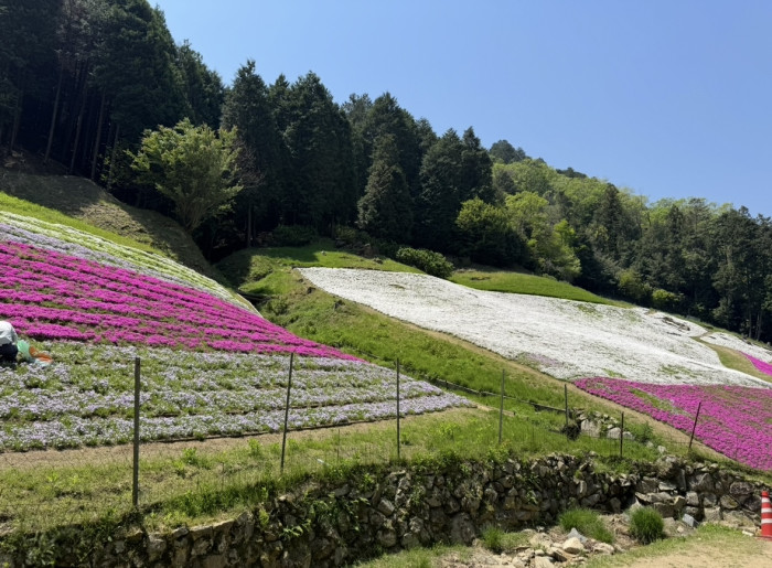 芝桜の小道をずっと歩いていくと、芝桜広場にも出て、こちらの芝桜も圧巻。途中には藤棚があり、美しい藤を見ることもできます。