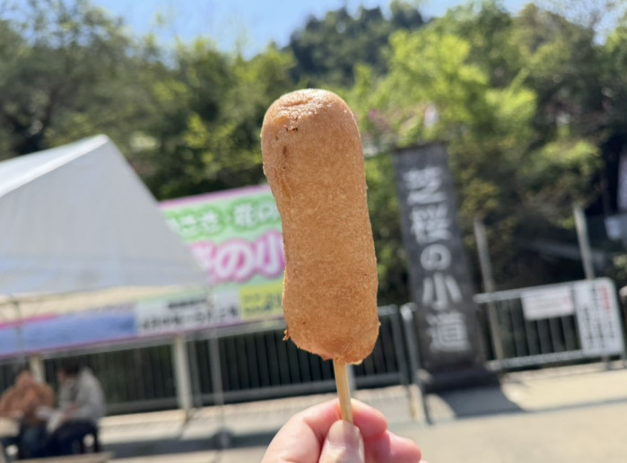 美しい花を堪能した後は「城下町ドック」をいただきましょう。中にチーズが練りこまれた蒲鉾が入っていてやさしい味。200円と求めやすいのもうれしいですね。