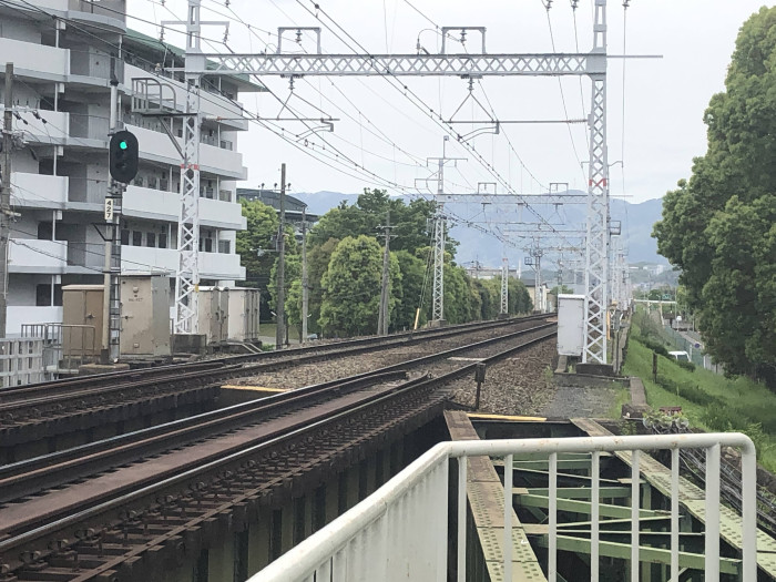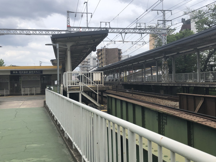 元々この辺りには、西院まで通る貨物線の路線を建設する予定だったそう。その遺構である橋梁を活用したのがこの歩道橋のようです。