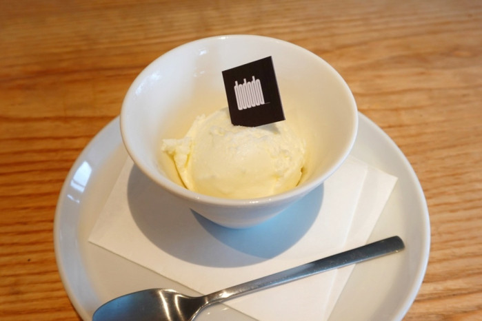 食後にはカフェラテを。ミルクのやさしさが際立つマイルドな味で、心がふっと緩みました。さらに、運営元「ガネーシャ」のアプリ登録特典で、自家製のミルクジェラートも。ほどよく甘く、後味はさっぱりとしていて、最後まで心地よい余韻が残りました。