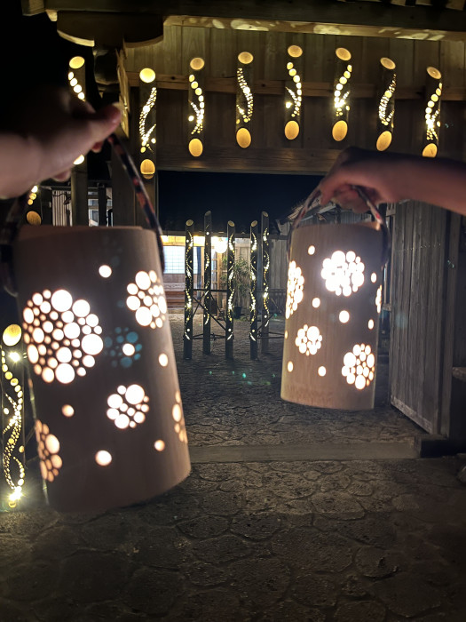 竹に一つ一つ穴が掘られて光が灯されて幻想的な世界が創られていました!!