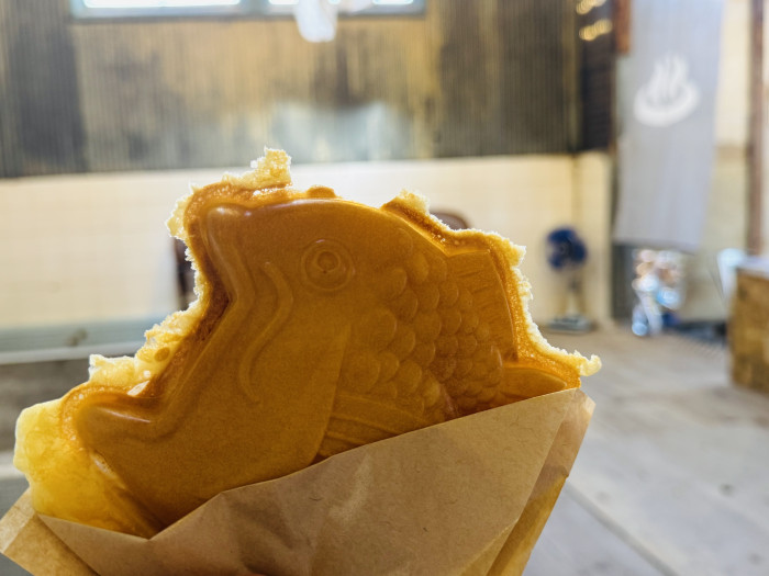コイ焼は熱々で、ほんのり甘くて絶妙においしい。