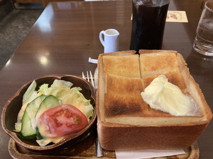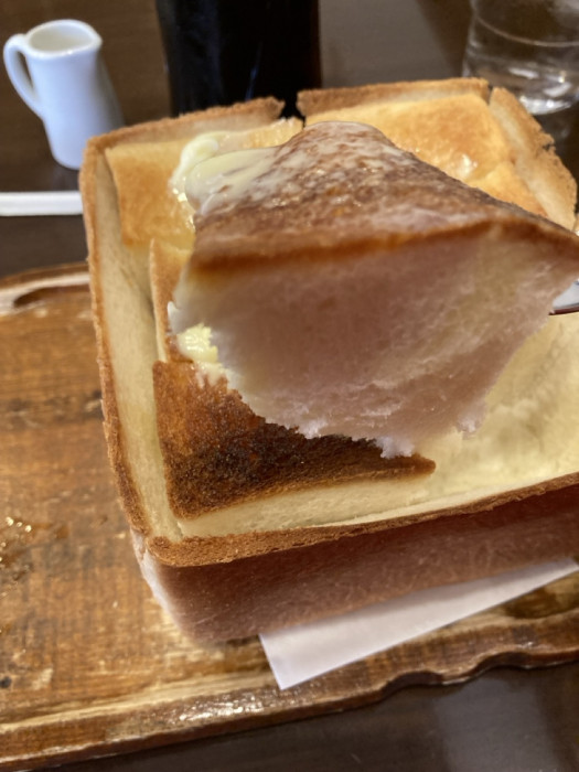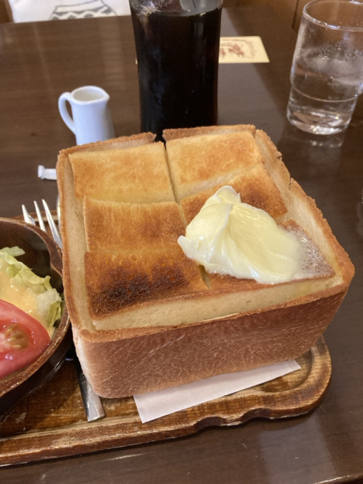 注文してから焼き上げたふわふわのトーストには、マーガリンとシロップがしっかりと染み込んで、とってもジューシーでした。