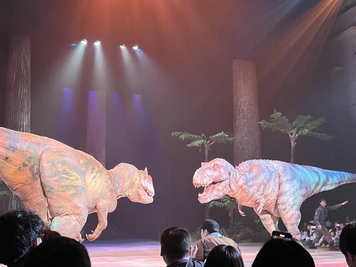 ティラノサウルスは8メートルの大きさで、かなり観客の近くまで来てくれました。肌の質感や、目の動きまで、恐竜の動きをここまで再現できるなんてびっくりです。