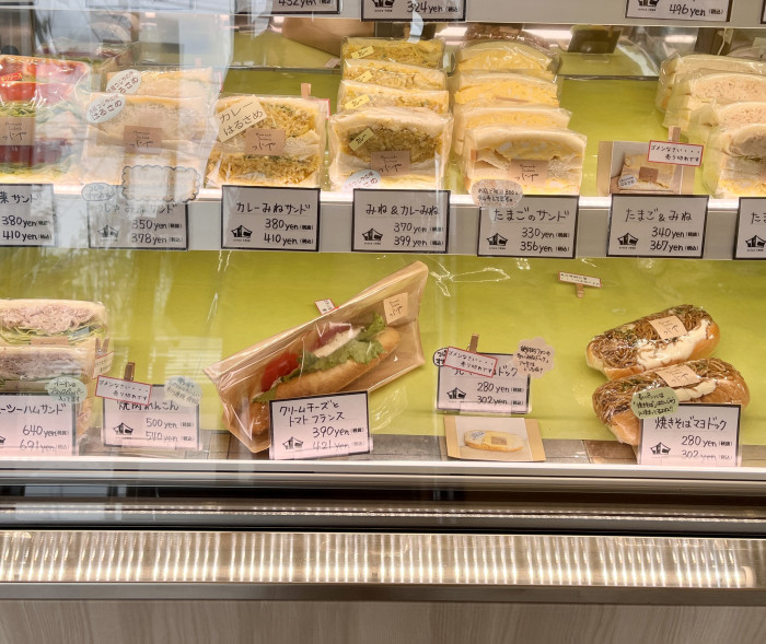 ショーケースには、具材たっぷりのサンドイッチがたくさん並んでいました。