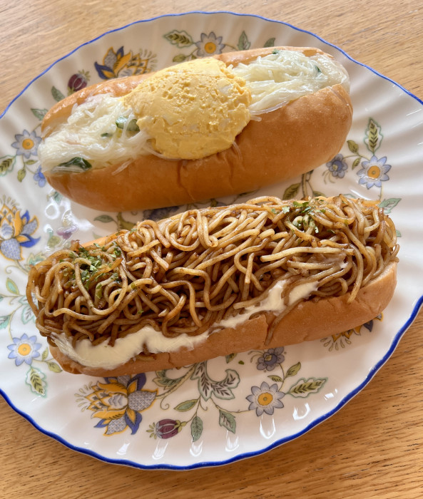 焼きそばドック(手前)と春雨ドック(奥)。すごいボリュームですね。