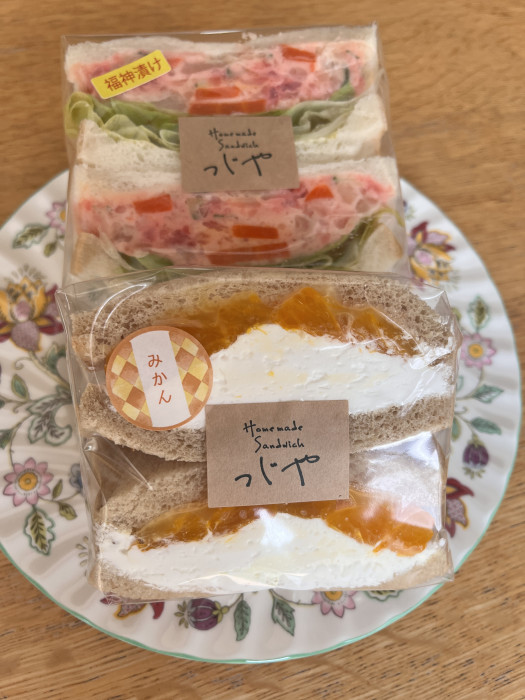 こちらは福神漬けサンド(奥)と、みかんのフルーツサンド(手前)。