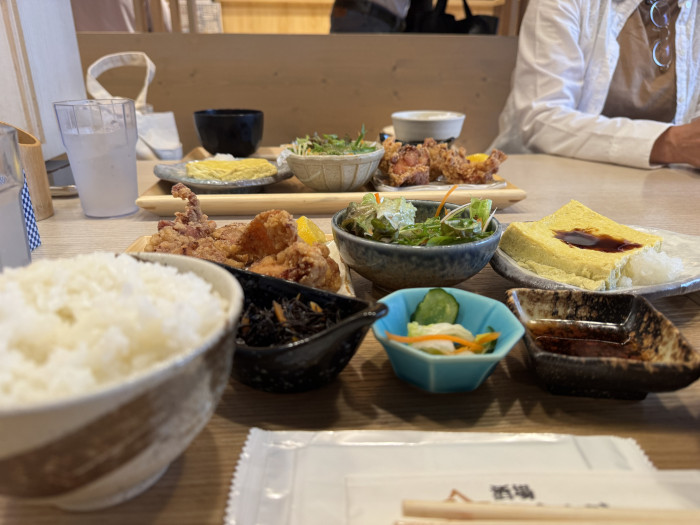 オーダーしたのは、同店いちおしの「Aランチ」。メインにから揚げも出汁巻、サラダに小鉢2つ、お味噌汁もついて1,000円(税込)です。