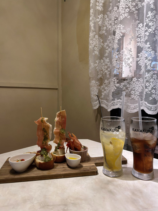 どれも美味しかったのですが、盛り合わせのカマンベール,生ハム,バジルソースがのったバゲットが特に美味しかったです。