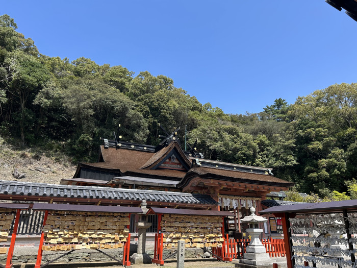 それでは早速お参りをしましょう。山に囲まれて厳かにそびえ立つ社殿からはとても神聖な雰囲気を感じられます。