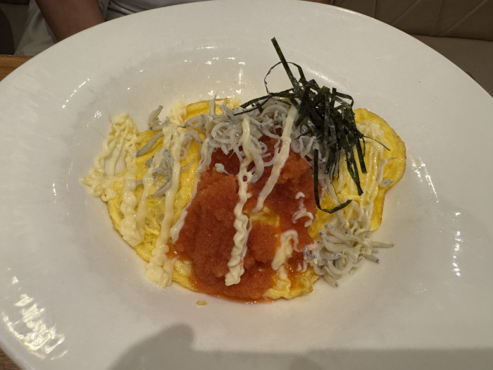 こちらは「明太子とシラスのオムライス」。明太子の辛さが後をひいてクセになりそうなおいしさです。