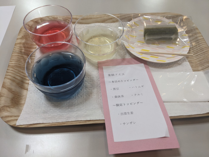 薬草の香り袋を作ったり、薬膳アイスやオリジナルハーブティーや開発中の琥珀糖を味わえます。