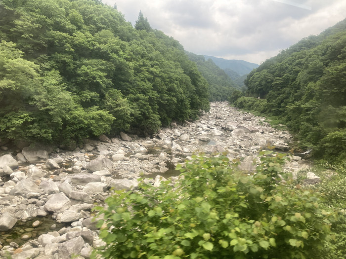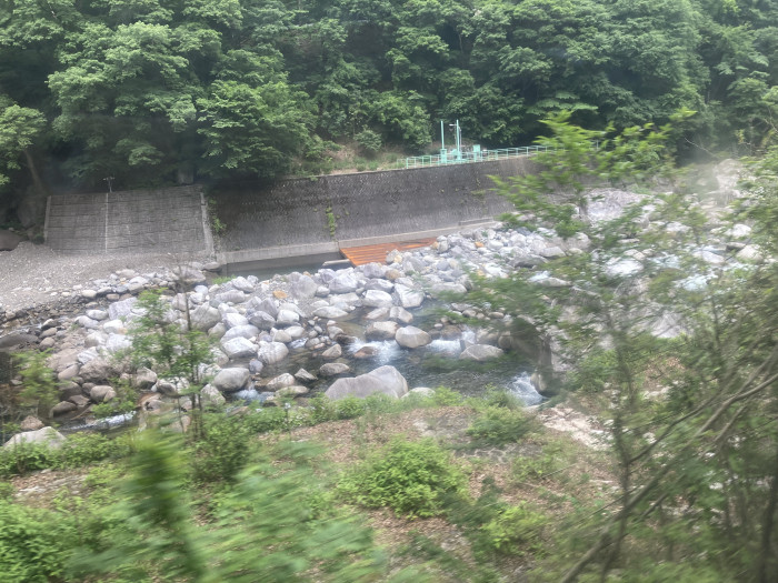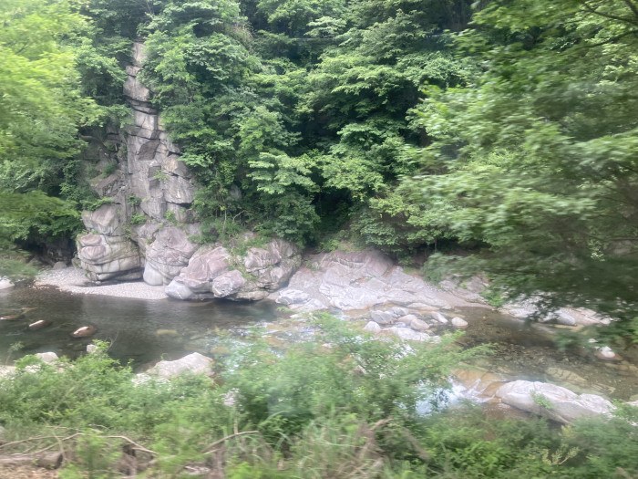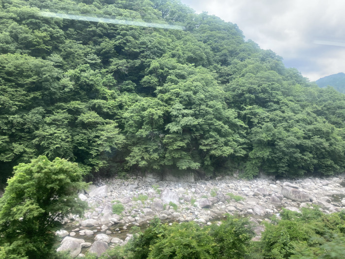 絶景スポットはちょうど鉄道で急カーブのエリアになるので、渓谷美を楽しみながらスリルを味わうこともできます^^