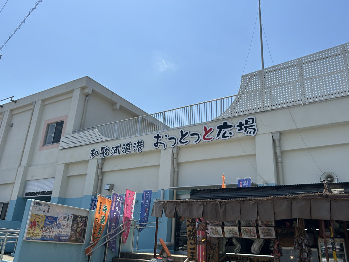 和歌浦天満宮を出て右の住宅街を抜けると、海と「おっとっと広場」が見えてきます。海鮮丼などで新鮮な海の幸がいただける場所のようです🐟