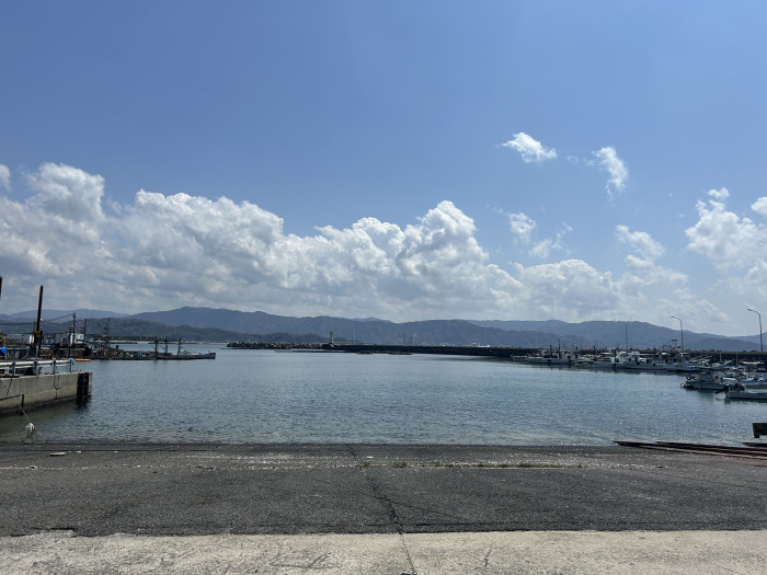 この港から海を見て右側に海に突き出している歩道と灯台が見えると思います!