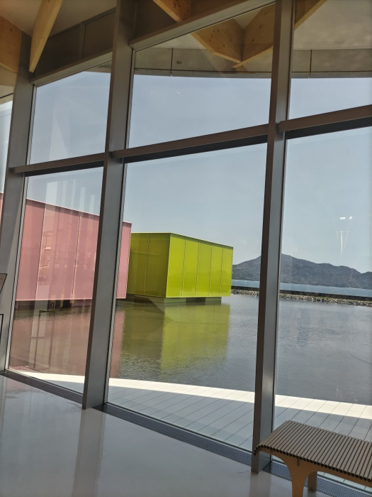 有名なのは海側にあるコンテナ部分。こちらは実は展示スペースで回廊になってて陸側の建物と続いてるんです。