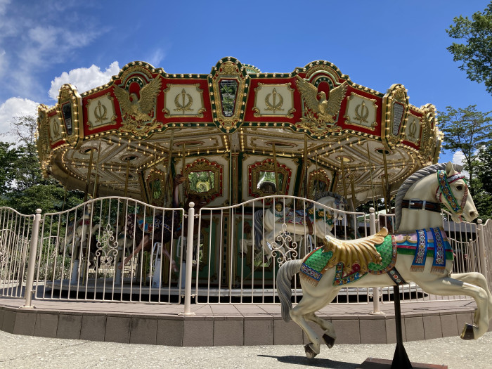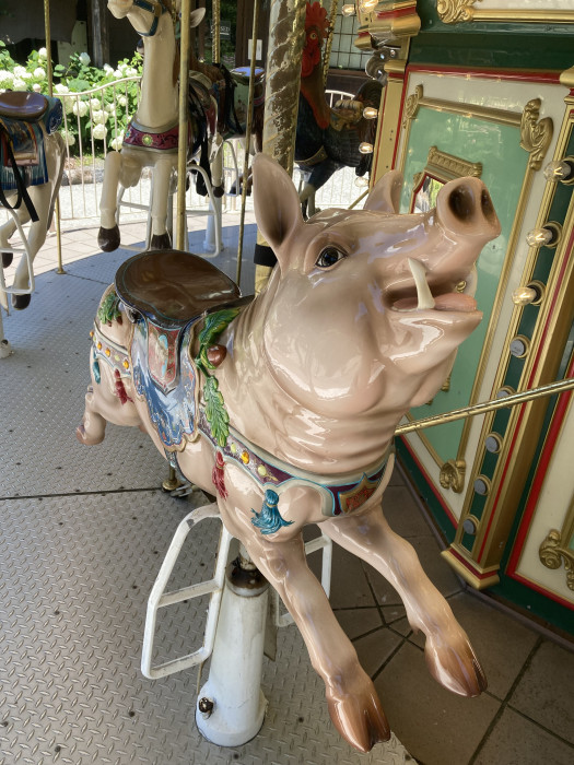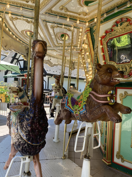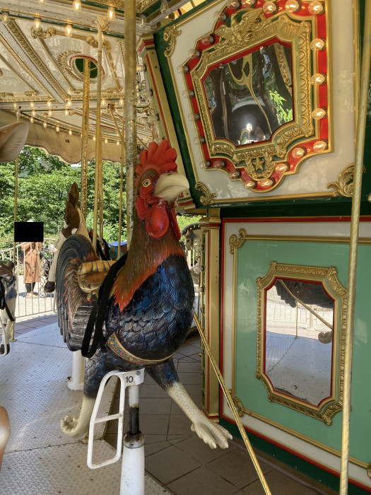 メリーゴーラウンドといえば馬というイメージが強いものですが、萌木の村にある『森のメリーゴーラウンド』では、さまざまな動物がお客さんを乗せて走っています。