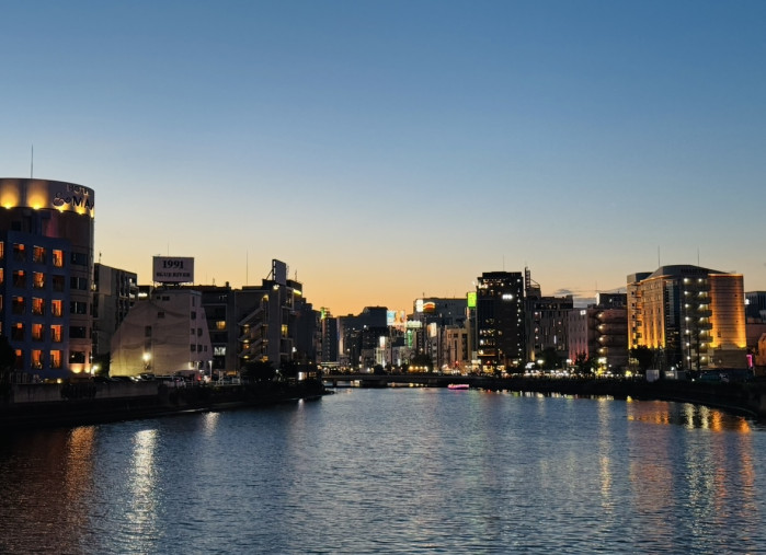 福岡県博多。夜景も奇麗なこのあたりの名物といえば中州に並ぶ屋台。