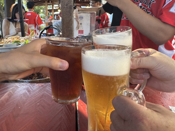 屋台の方々、どこもソフトバンクの真っ赤なユニフォームを着ている方が多かったです。