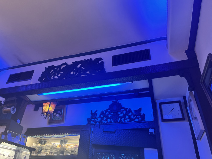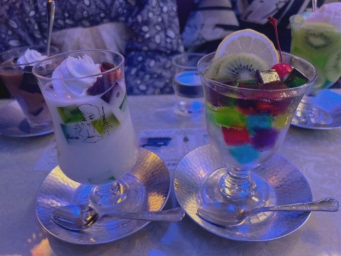 喫茶ソワレの名物といえば、この青い照明と「ゼリーポンチ」。