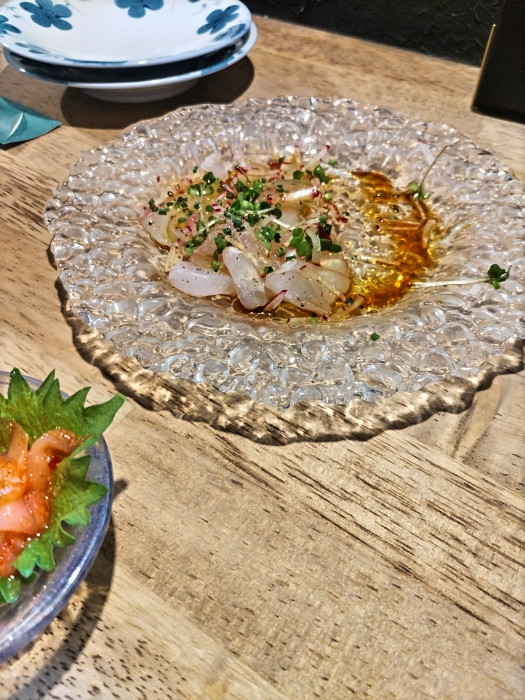 お魚料理がとても美味しい。カルパッチョ注文してカウンター席でいただきました♪
