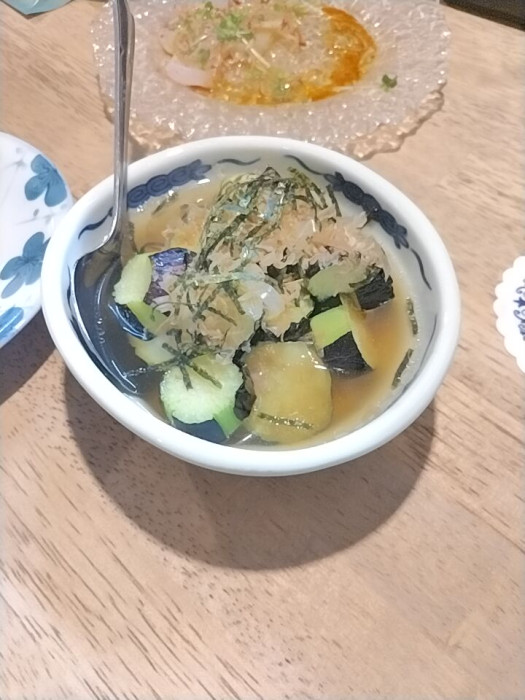 ナスの揚げひたしも出汁がきいてて美味しい。