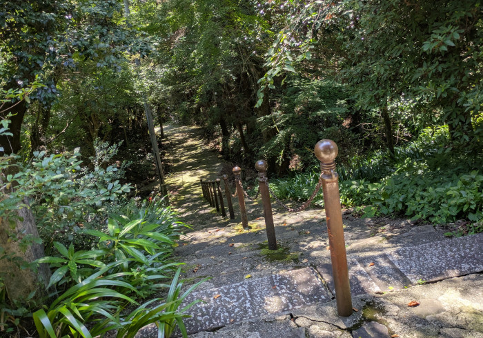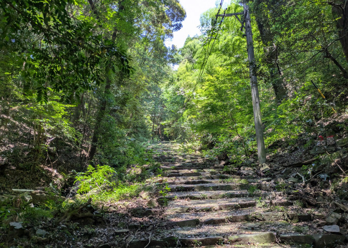 この山道の階段は、険しく165段もあるとか…。