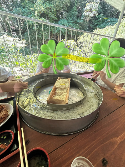 川を見ながら食べられる、奥のお座敷がおすすめです。