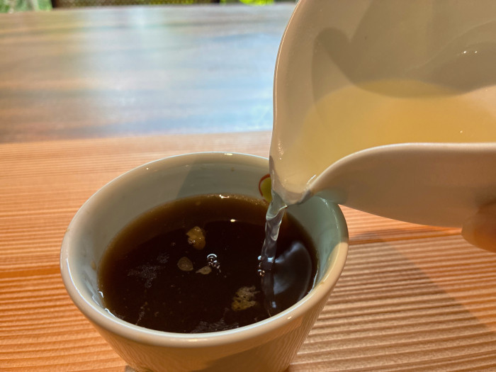 蕎麦といえば、締めの“蕎麦湯”がまた嬉しい。ほっとひと息。つゆの甘さと蕎麦の香り、栄養たっぷりな至福の締めの1杯です。