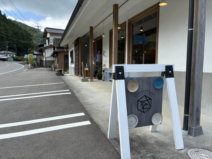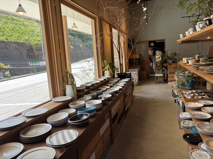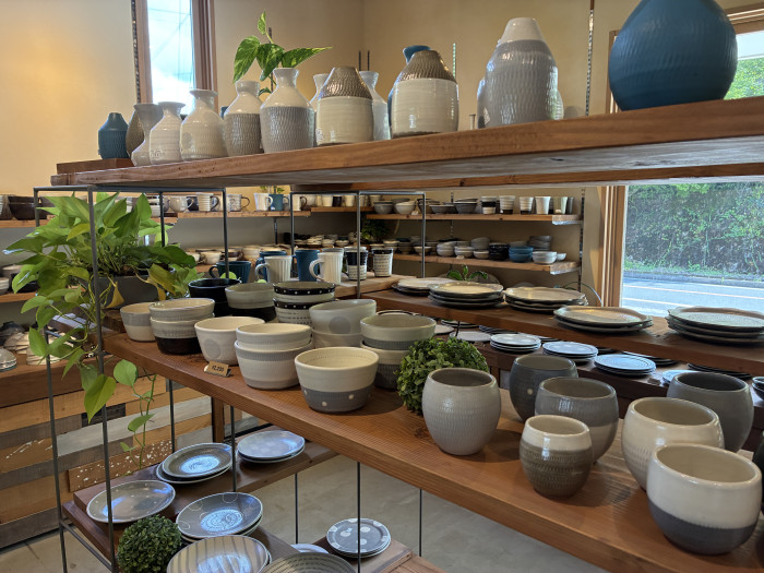 その中で、今回伺ったのは「上鶴窯」。約50年前から続く窯元で、2019年にリニューアルして現在のお店のかたちに。上鶴窯がある国道211号沿いにはいくつかの窯元が並んでいてそれぞれの雰囲気がありますが、ここはカフェのような可愛らしい、現代的な造り。