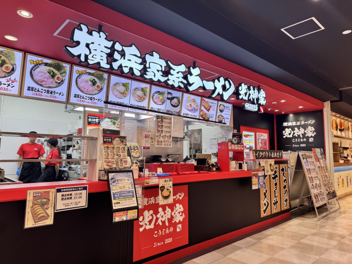 濃厚なとんこつ醤油ベース、とんこつ塩ベースのスープを主軸とし、太いストレート麺がスープによく絡む食べ応えのある横浜家系ラーメンの「光神家」。
