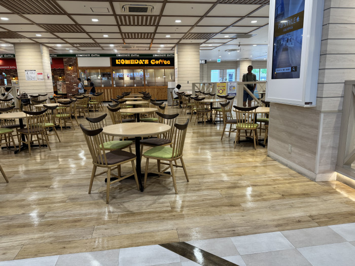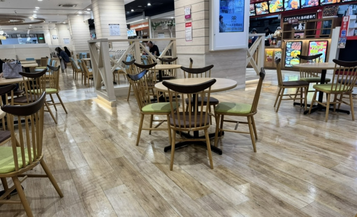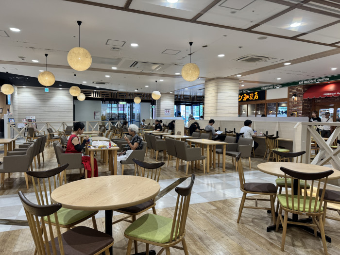 こちらのフードコート、広々としていて使いやすいです。店舗も多いですが、店舗と店舗の間に、小さいですが子どもの遊び場もあって配慮がうれしいですね。