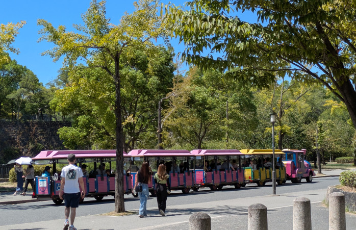 大阪城公園はとても広いので、目的地まで歩かずに移動したい方には、歩いていたら見かけたこの「さくら号」がオススメです!『大阪城園内周遊トレイン さくら号』