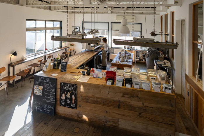 Itoya coffee factoryは本店とは異なり、長年繊維工業試験場として活用された建物をリノベーションした店舗で、近くで焙煎機を見ることができるのが特徴です。