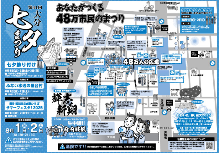 場所は大分駅北口から197号線までの広大なエリアを使い、青森のねぶた祭りに似た「府内戦紙」(ふないぱっちん)を中心に様々なイベントが行われます。