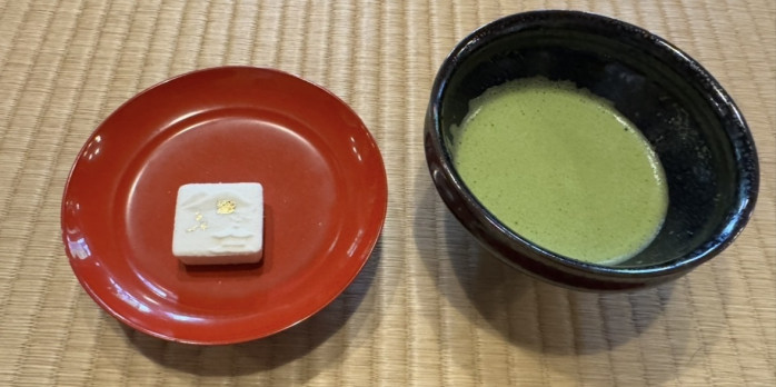 金閣寺には不動釜茶所があり、良い雰囲気を感じながら500円でお抹茶をいただけます。