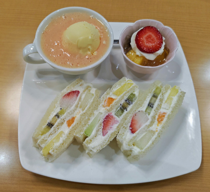 この日私が注文したのはフルーツサンド・ミックスジュースフロート・季節のゼリーがセットになっているレディースセットです。