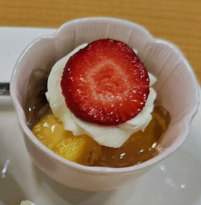 どこか懐かしいミックスジュースも、イチゴがのっかった季節のゼリーも美味しくいただきました。