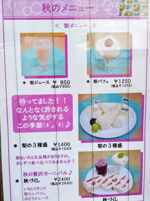 これからは梨や秋づくしのメニューがおすすめ。