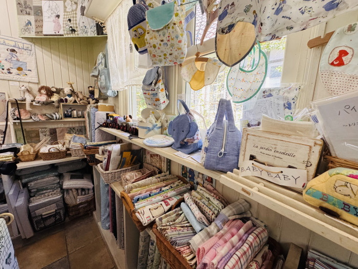 豊かな自然の中にある同店。イングリッシュガーデンの門扉をくぐり、最初のドアを開けると、そこには手芸の世界が広がります。
