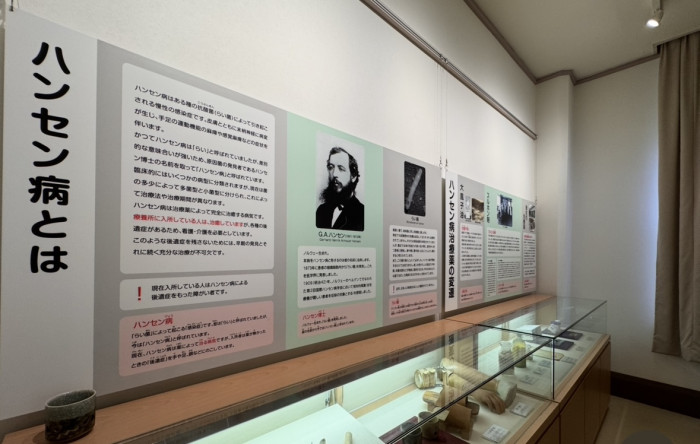 ハンセン病の説明や歴史もよくわかるようにパネルで展示しています。